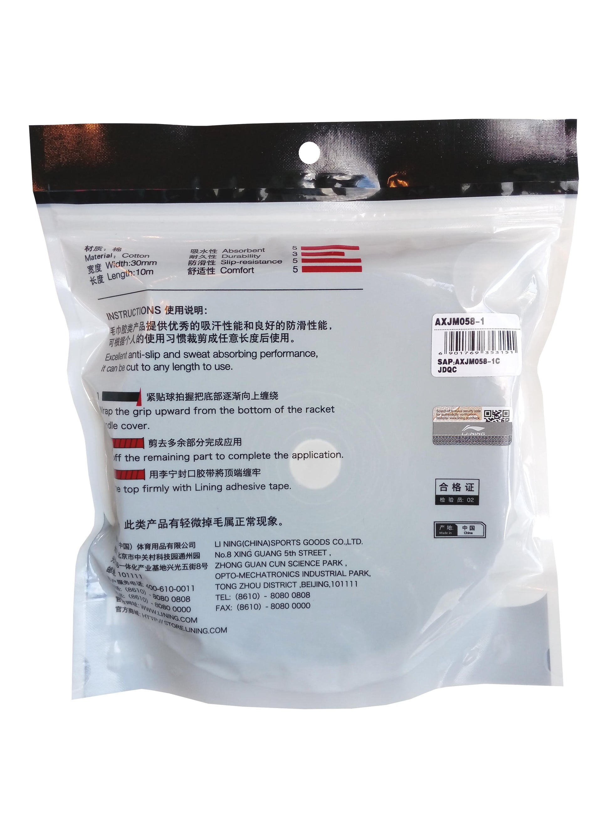 Li-Ning Premium Frotteegriffband Towel Grip Frottee 10m Rolle schwarz